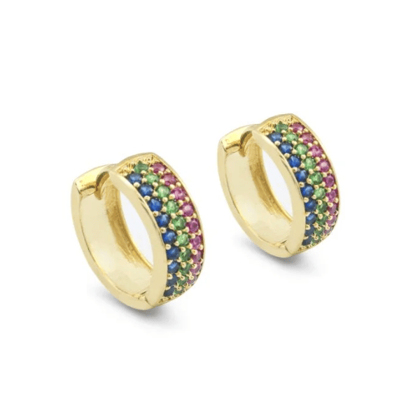 Os brincos Argolas 3 Fileiras com Zircônias Coloridas são a escolha perfeita para quem ama ousar com elegância. Cada fileira traz o brilho das zircônias em tons vibrantes, criando um visual alegre, sofisticado e cheio de personalidade.